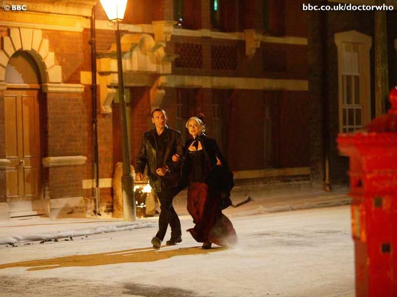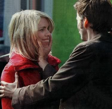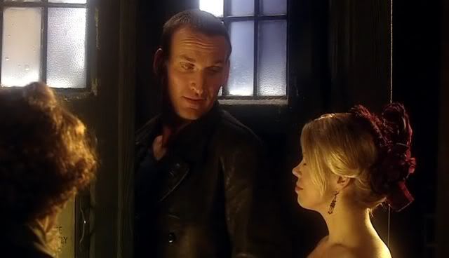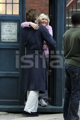 Cut from "The Unquiet Dead": the hug. I'm still trying to figure it out. It's not with the behind-the-scenes pictures, so of course I assume it was supposed to be in the episode, but where would it have been placed? She has that coat thing on, and the Doctor has the newpaper, so it would have been towards the beginning, right? Oh well, it's beautiful to look at.